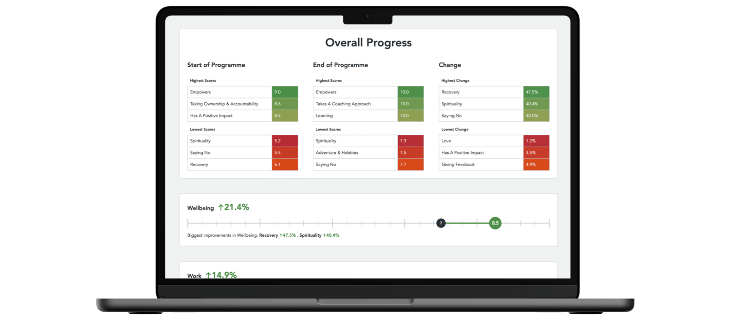 We thoughtfully use data to enhance the experience for each individual and enable employees to track their progress throughout their programme.