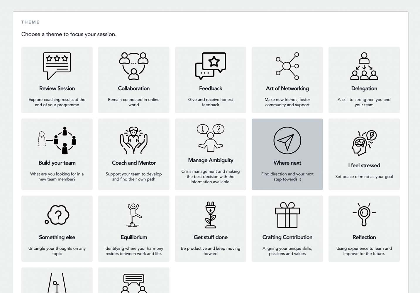 Customisable weekly session themes remove the “waste” of legacy coaching to drive clarity and focus and ensure each coaching interaction yields immediate, tangible benefits.